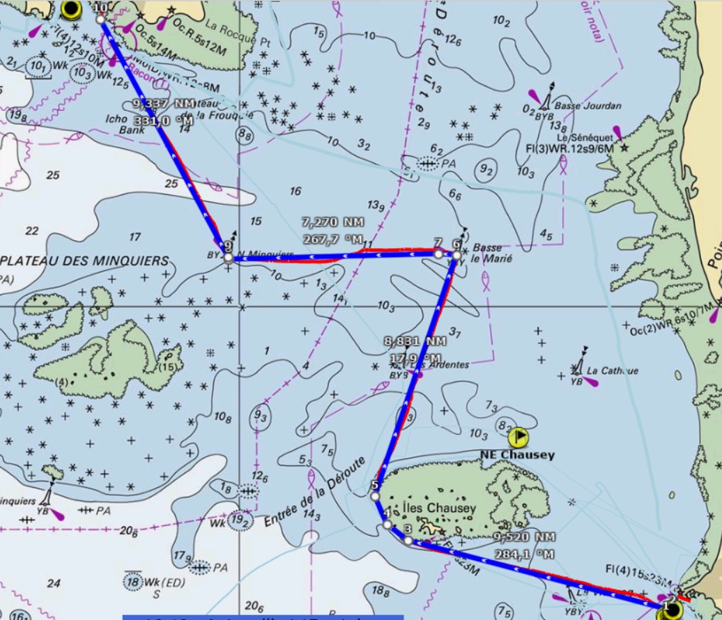 On affale après les Rondes et en route au reaching d’abord puis au près tribord après les 2 têtes de la Déchirée.